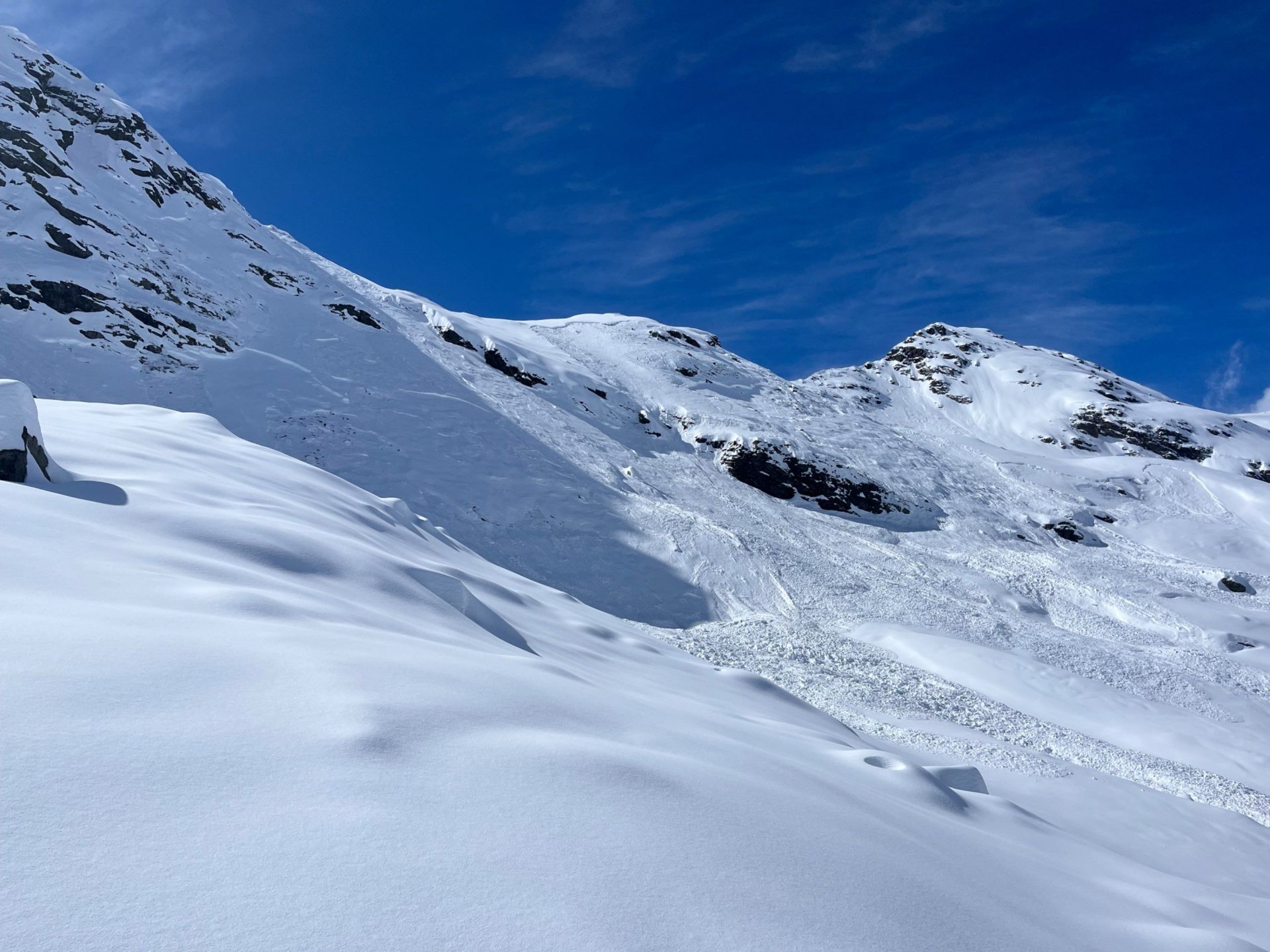 Si tratta di una valanga a lastroni di piccole dimensioni (dimensione 1), distaccatasi in un pendio esposto a nord-ovest a ca 2600 m con pendenza compresa tra 30° e 35°.